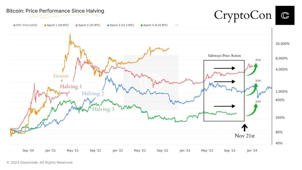 And if history were to repeat itself this upcoming halving (which will take place at the end of April 2024), then this pre-Bitcoin halving should start in, ah…In about 40 days (on November 21, 2023, to be precise).