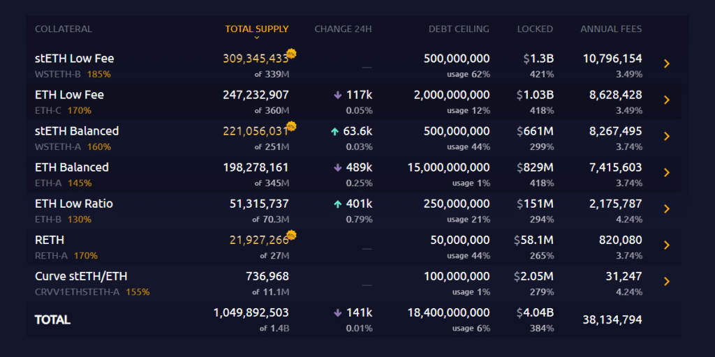 In addition, the RETH-A vault registered a significant amount, with 21 million DAI. These numbers reflected the growing popularity and adoption of Liquid Staking Derivatives within the Maker Protocol.