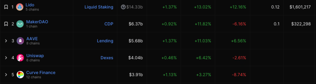 As for their respective Total Value Locked (TVL), DefiLlama showed that Aave, Uniswap, and Curve are aligned in descending order.
