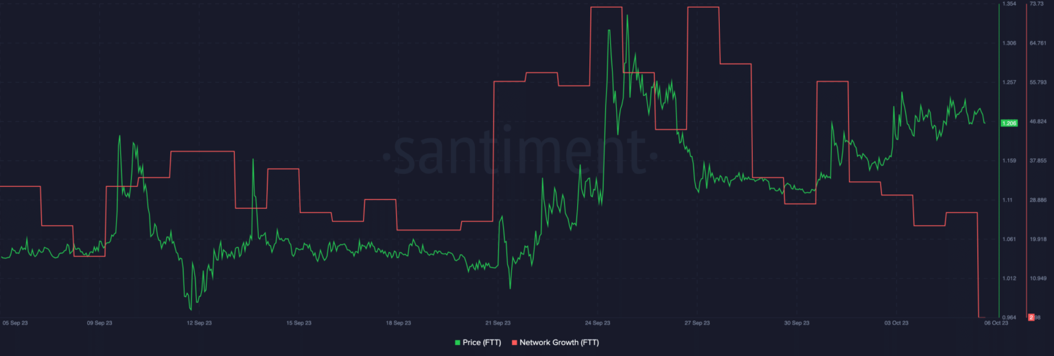 At the time of last report, FTT was trading at $1,206. However, it is essential to highlight that FTT’s network growth has seen a notable decline, indicating less interest from new addresses.