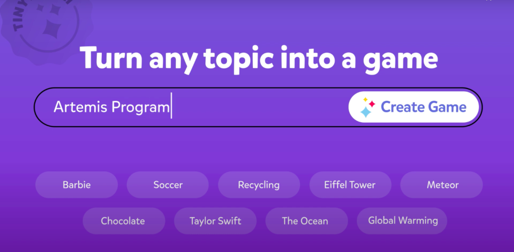 A text prompt entered into the TinyTap AI game generator. Source: Tiny Tap
