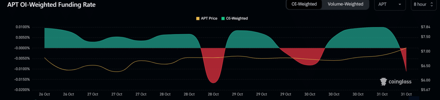 If the stats are to be believed, APT’s bull rally could end before the token is unlocked. According to Coinglass, APT’s funding rate turned red as of press time. This showed that derivatives investors were reluctant to buy APT at a higher price.