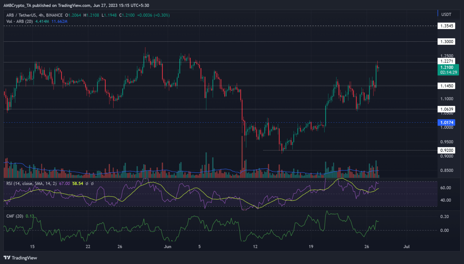 With bullish BTC firmly above USD 30k, ARB might try to clear the supply area and clear the hurdle near USD 1.25. A session close to $1.25 can allow for a $1.30 and $1.36 recovery.