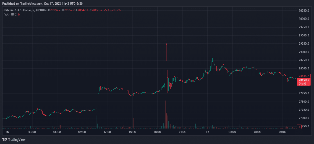 As a result, the price of BTC fell. At the time of writing, hands were exchanged for $28,150.