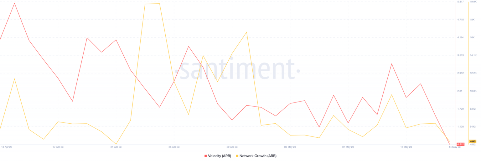 Declining network growth suggests the number of token holders has increased as old addresses trusting ARB piled up the token at a discount.