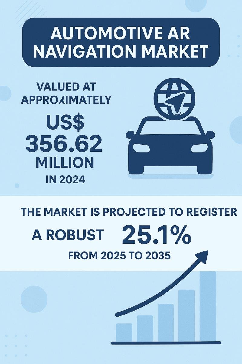 The Automotive Augmented Reality (AR) -Navigation market is planned for remarkable growth, powered by the increasing demand of the consumer for improved safety and convenience in modern vehicles. With a value of approximately US $ 356.62 million in 2024, the market is expected to register a robust CAGR of 25.1% from 2025 to 2035.