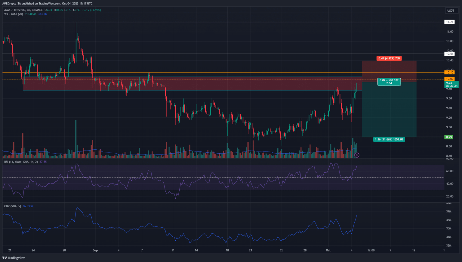 Given the bullishness in the market, shorting AVAX could be too risky. A pullback to $9.5 in search of liquidity was possible, but a full retrace of the rally with such strong bids could be unlikely. Therefore, traders can wait for a breakout beyond $10.16 and then retest to go long, targeting the resistance at $11.2.