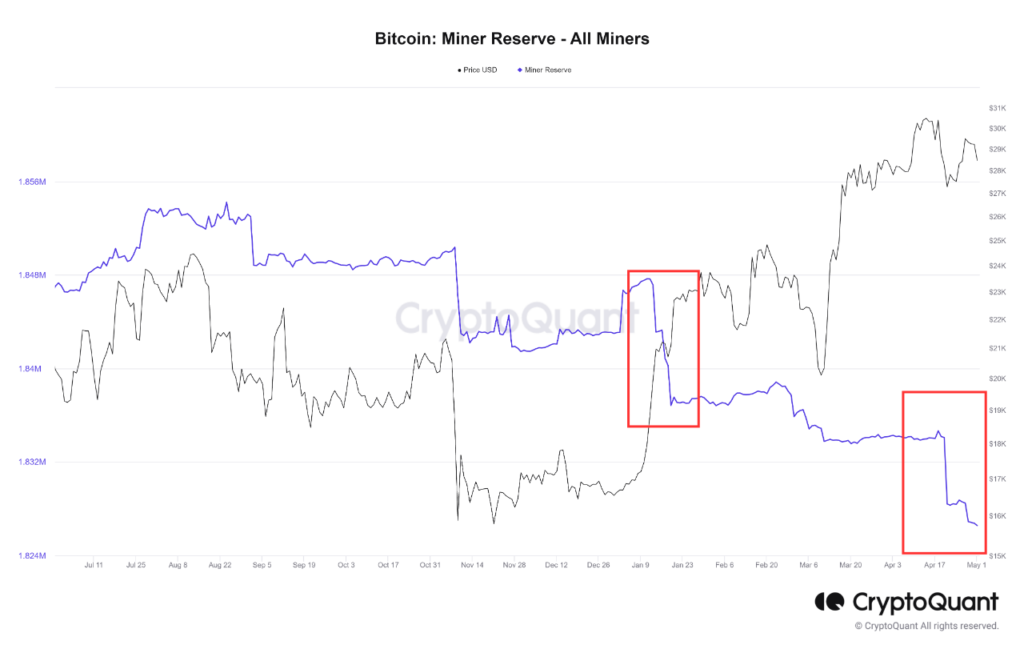 As an analyst in a CryptoQuant after pointed out that BTC miners have been continuing to shave coins off their reserve lately. The “miner reserve” is an indicator that measures the total amount of Bitcoin that all miners currently hold in their wallets.