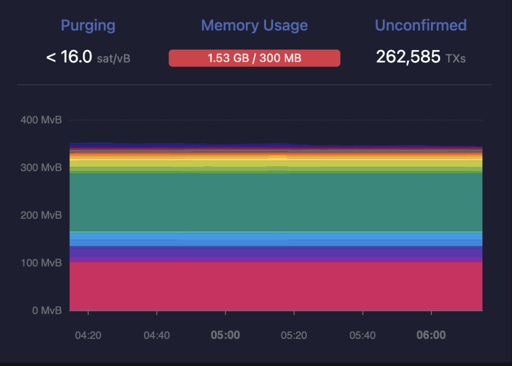 The memory pool, the temporary storage space for ongoing transactions, was 1.54 GB at that time, significantly more than the 300 MB capacity.