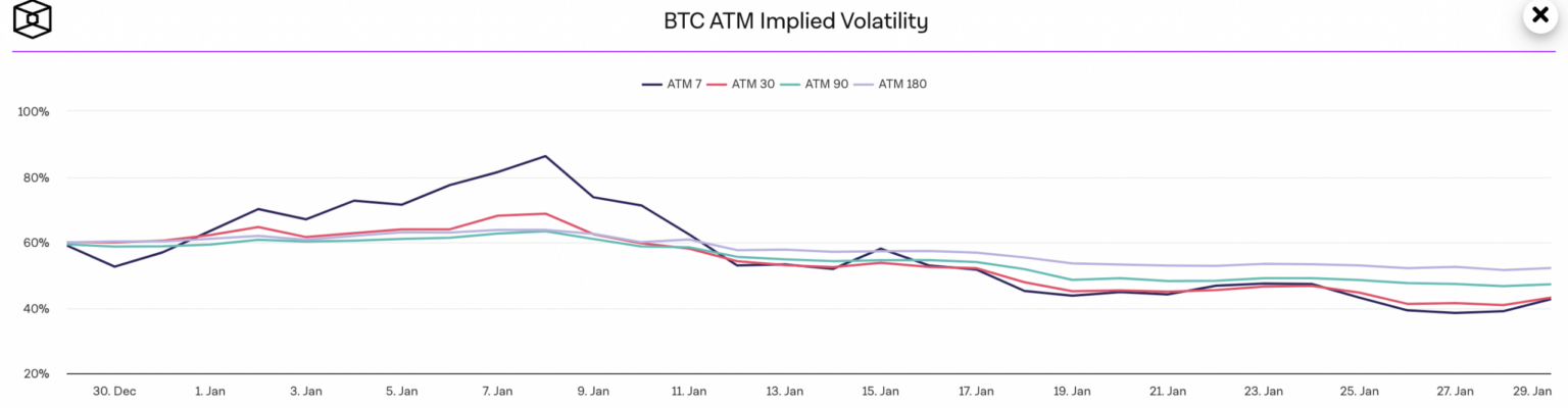 Traders may interpret a lower IV as an indication that the cryptocurrency is likely to experience less dramatic price swings in the short term.