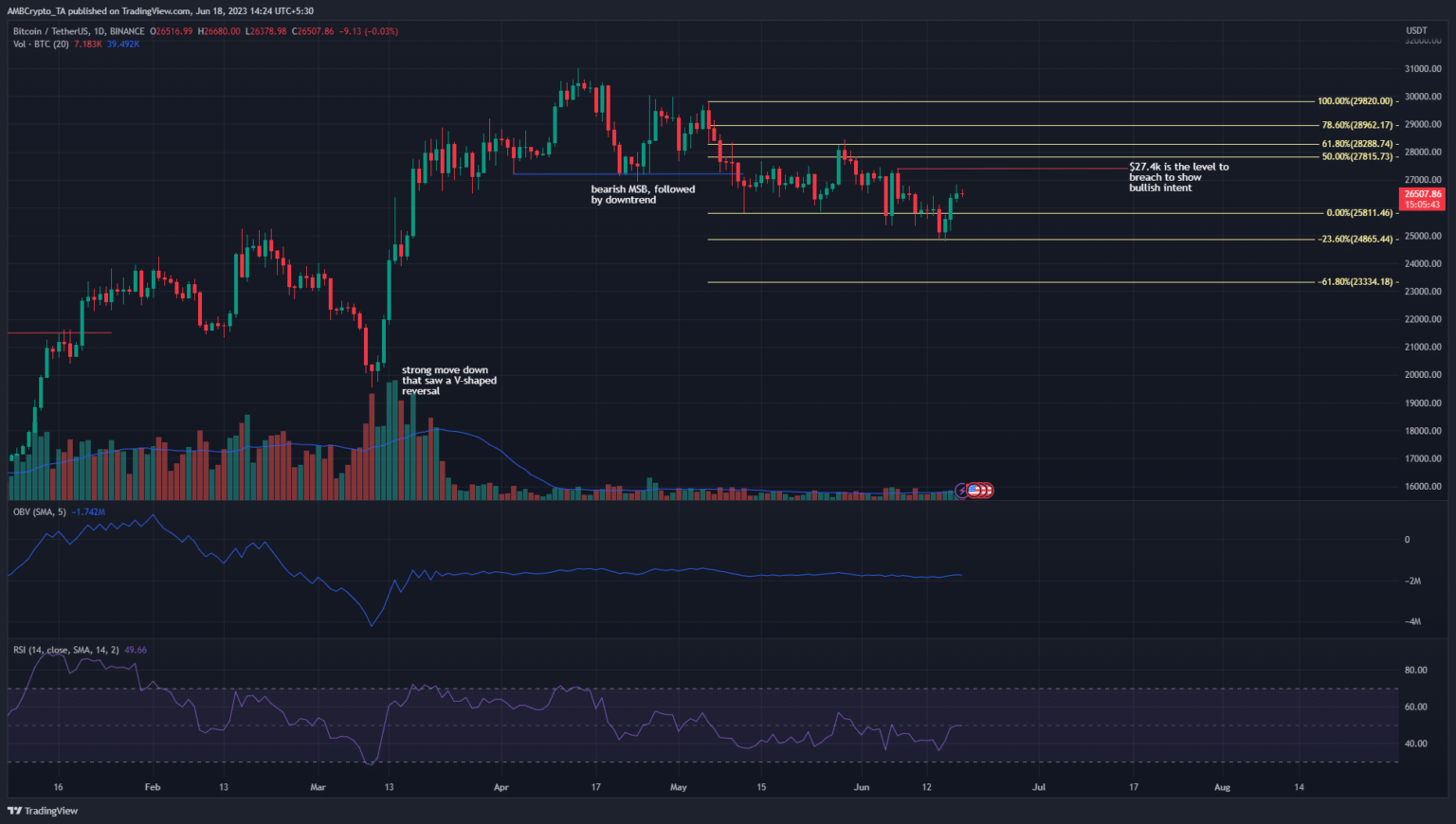 - Bitcoin’s market structure has been bearish, but a move above $27.4k could change that.