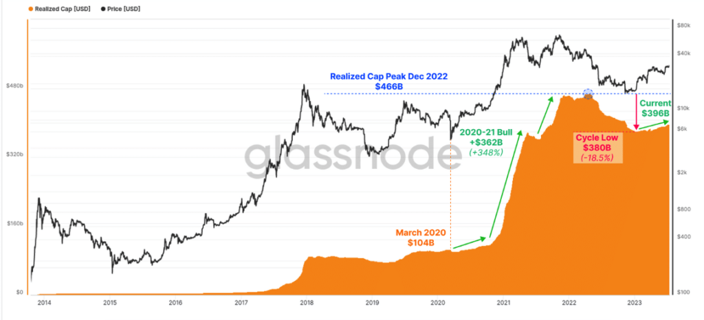 But the recovery started in March 2020. And later in 2021, there was a bull market where the realized cap increased by 348%.