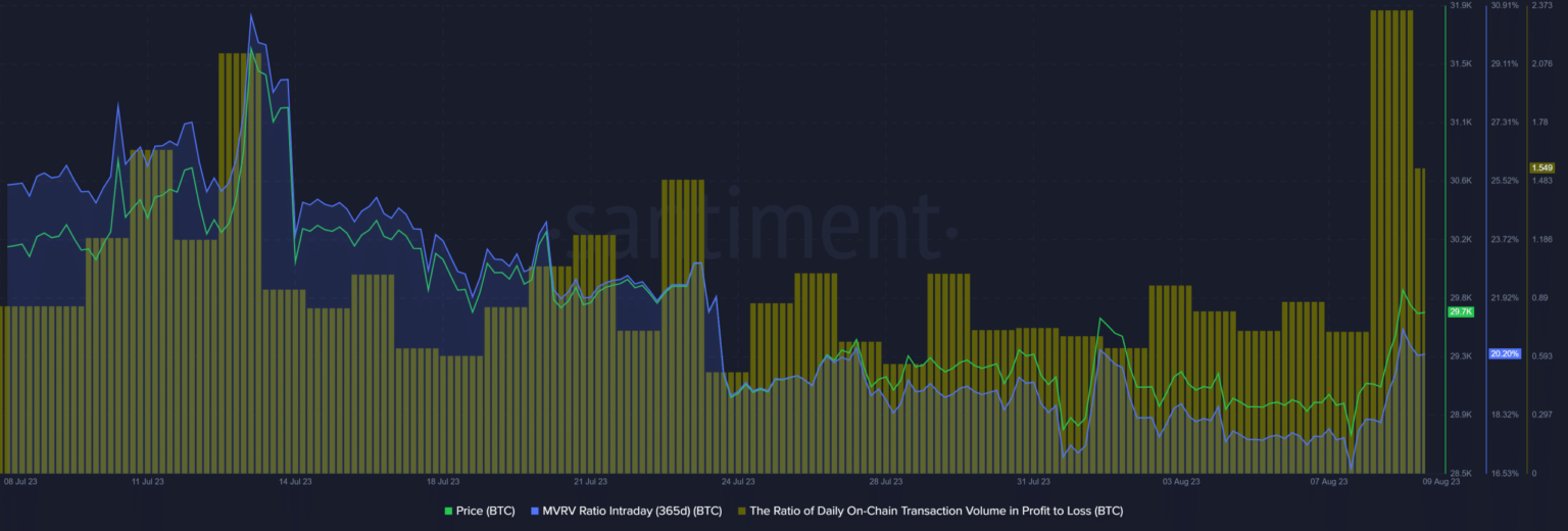Finally, the 180-day MVRV underlined that long-term holders emerged as the beneficiaries of Bitcoin’s recent surge in price. Moreover, these long-term holders could be among those who took the opportunity to profit when the BTC price crossed the $30,000 mark. Currently, the MVRV of 180 days was over 6%.