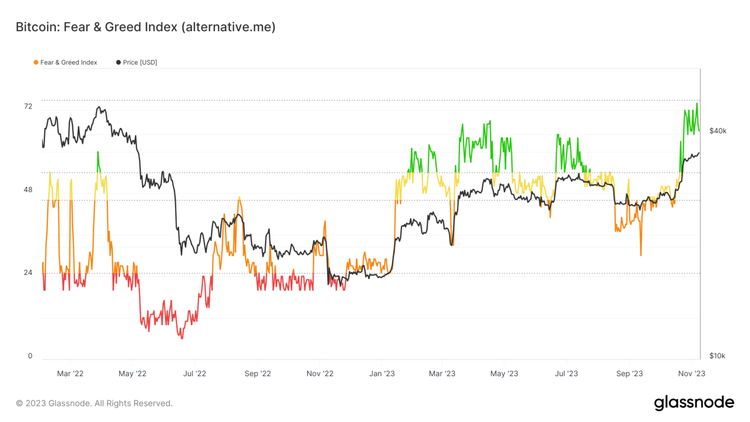 This was reinforced by Bitcoin fear and greed index. According to Glassnode, the Bitcoin Fear and Greed Index stood at 74 at the time of writing. This measure ranges from zero to 100. It is also intended to evaluate investor sentiment.