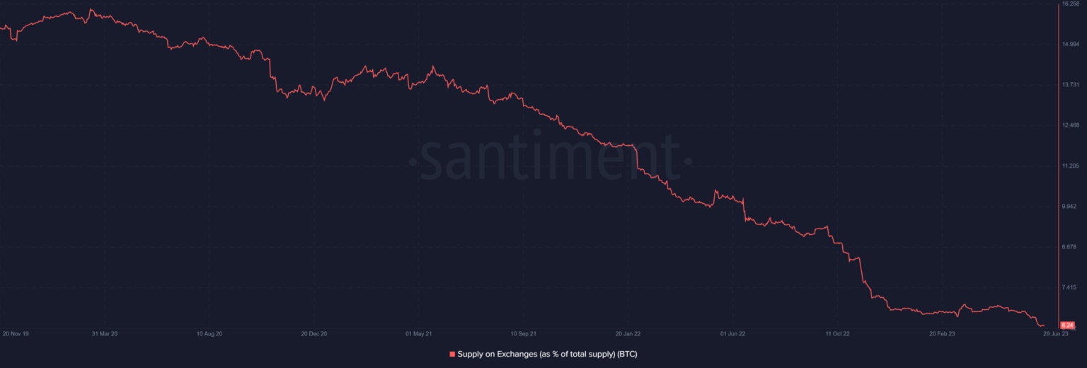 In addition, Bitcoin’s dwindling supply on exchanges serves as further proof of the illiquid nature of this asset. According to the Santiment chart, the available supply was about 6.24 at the time of writing. This measure indicates that despite continued accumulation by individuals and institutions, there are no signs of a sell-off or significant supply in the market.
