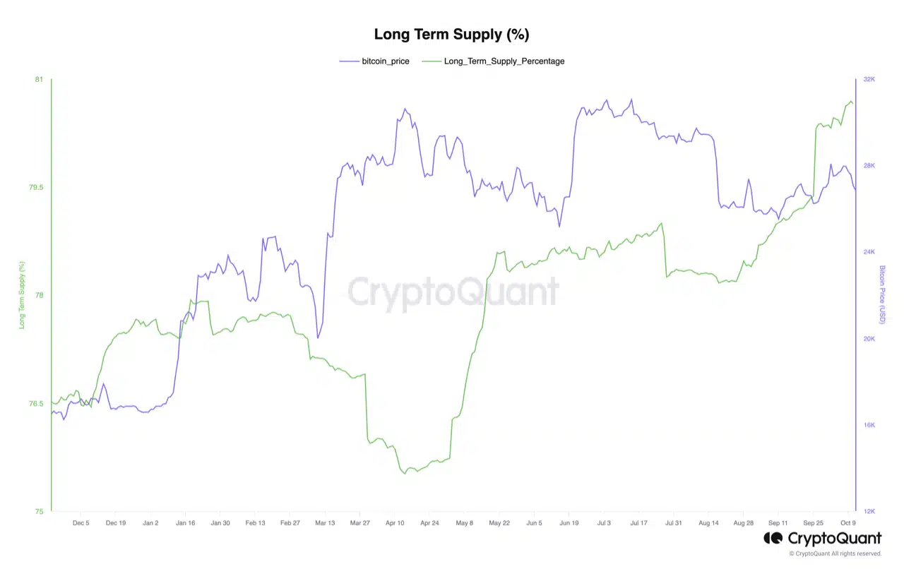 The percentage of total Bitcoin [BTC] its long-term investors’ supply has reached an all-time high of 80.34%, pseudonymous CryptoQuant analyst Onchained found in a new report.
