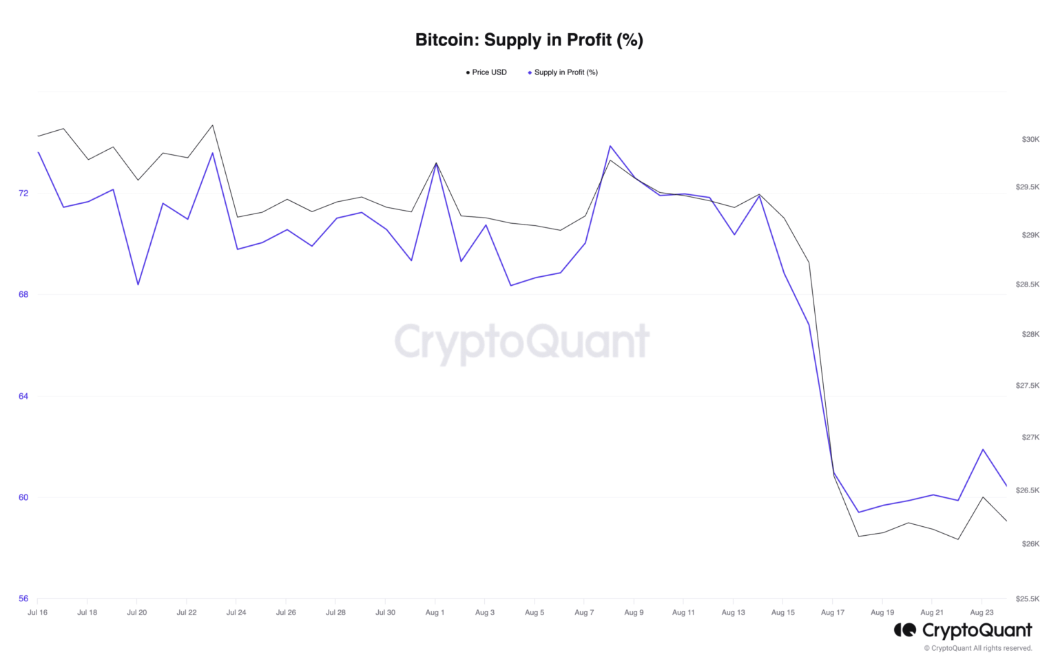 Like Bitcoin’s [BTC] the price stalled at $26,000 after the recent capital exodus, falling to a low last seen in June. The coin’s supply of profits has decreased while its supply of losses has increased, according to pseudonymous CryptoQuant analyst On the chain revealed in a new report.