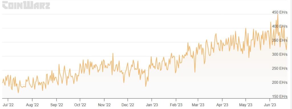 Actually, BTC‘s hashrate had been on the rise for years. Coinwarz’s chart revealed that the hashrate chart has risen significantly over the past year. At the time of writing, Bitcoin’s hash rate stood at 354.43 EH/s.
