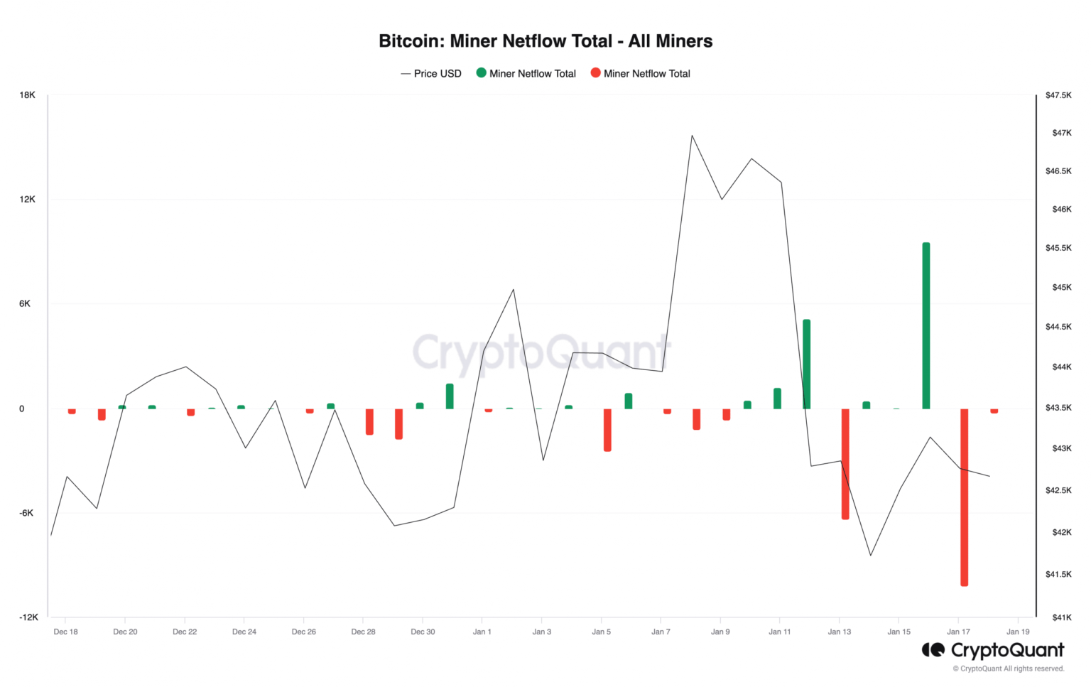 Bitcoin [BTC] Miner Netflow plummeted to its lowest level of the year on January 17, indicating a significant decline in miner reserves, data from CryptoQuant showed.