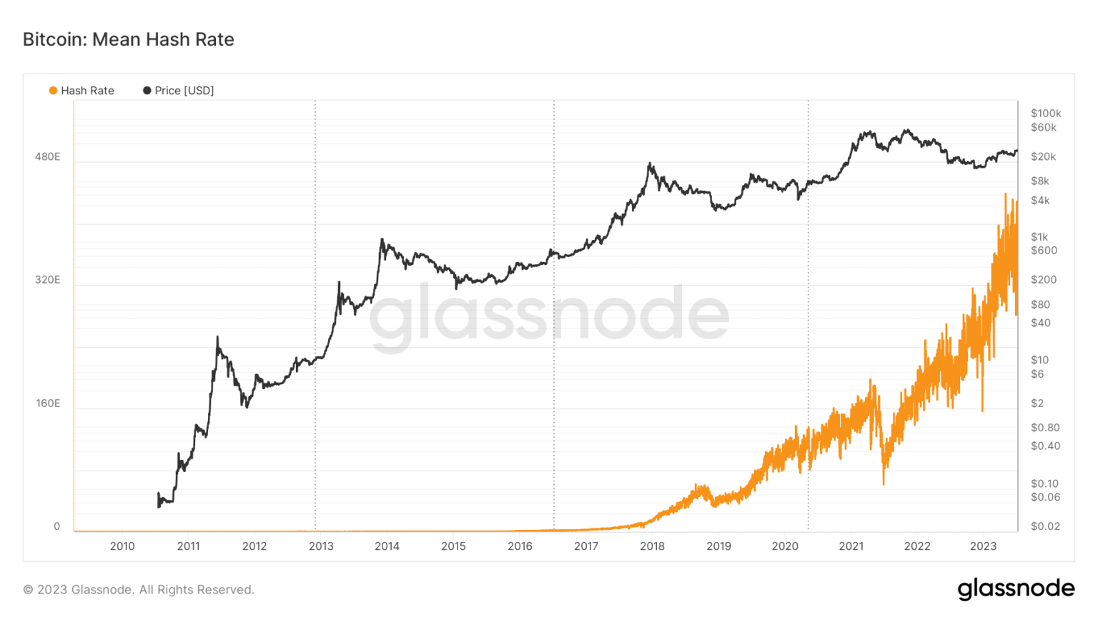 The intense debate around Bitcoin [BTC] mining has merged with the evolution of blockchain technology and cryptocurrencies. According to on-chain analytics company Glassnode, the network’s hashrate has grown astronomically over the past five years, reflecting the surge in BTC’s value.