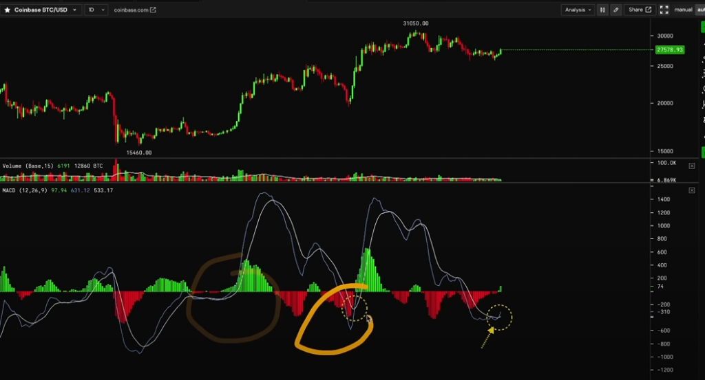 “These daily MACD crossovers can sometimes be just the start of a much bigger move. We saw this earlier in March with a 45% pump right after our daily MACD cross-up, and earlier this year when we crossed over. We went from about $16,000 to over $20,000, $23,000 and $24,000.
