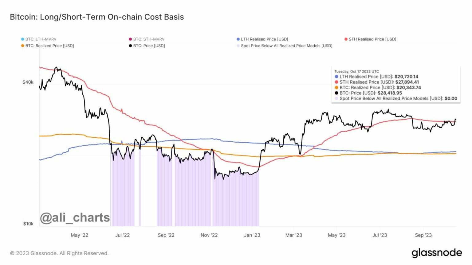 The critical price point highlighted was the short-term holder cost basis or the Short-term Holder Realized Price (STH RP). The STH RP calculates the average price at which Bitcoin was purchased by investors who held their holdings for less than 155 days.