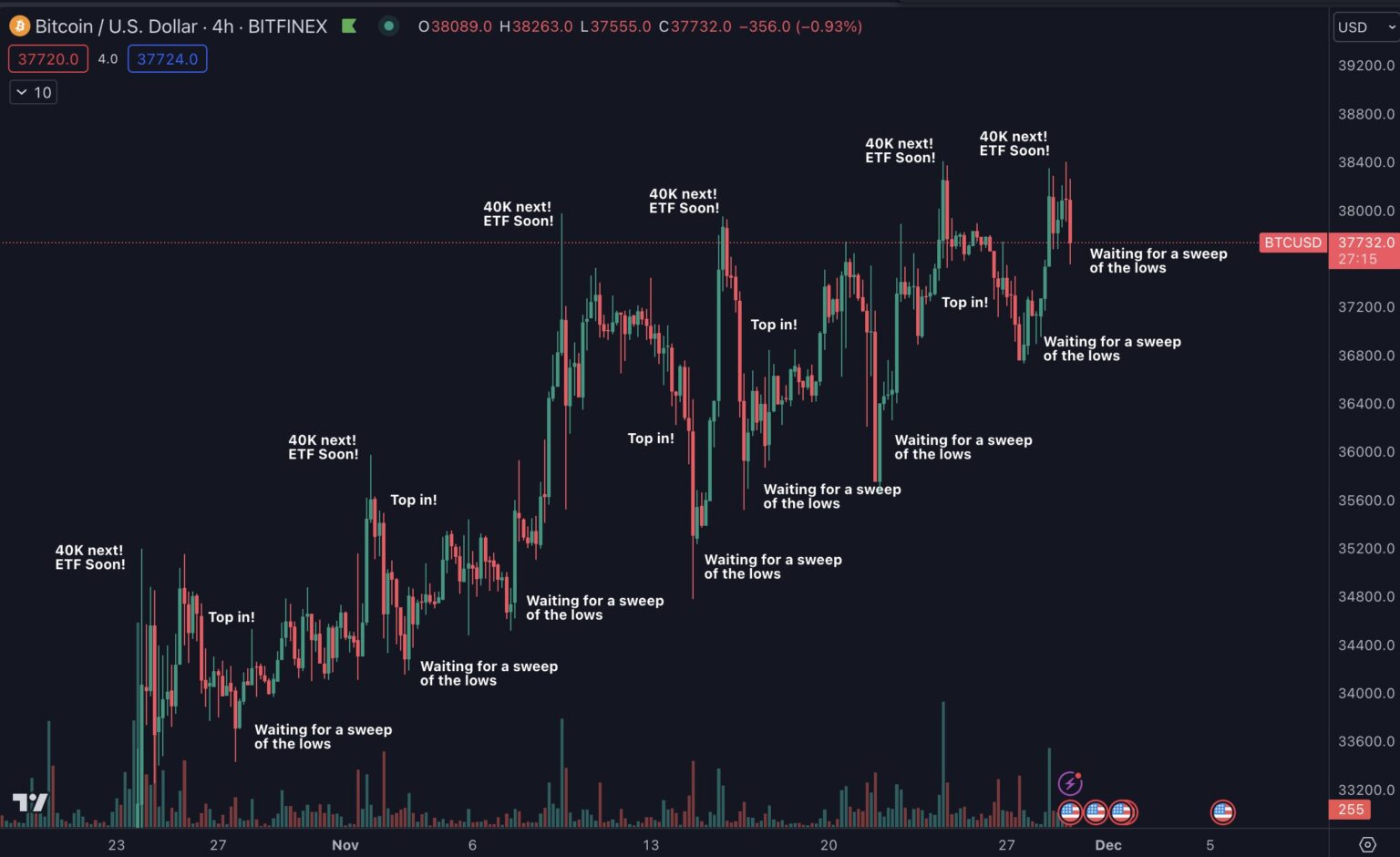 As crypto analyst Daan Crypto Trades noticed“The market is doing its best to shake off anyone trying to prepare for a possible Bitcoin ETF approval. It’s just free liquidity for the middle market/whales. Sweep highs, trap longs, squeeze out longs, bait shorts, front run lows and repeat the whole process.