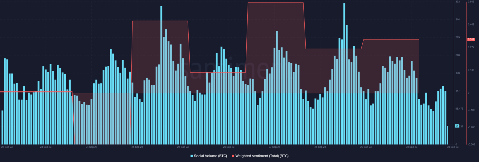This episode definitely had a negative impact on BTC‘s performance, which was evident from the slight decline in weighted sentiment in recent days.