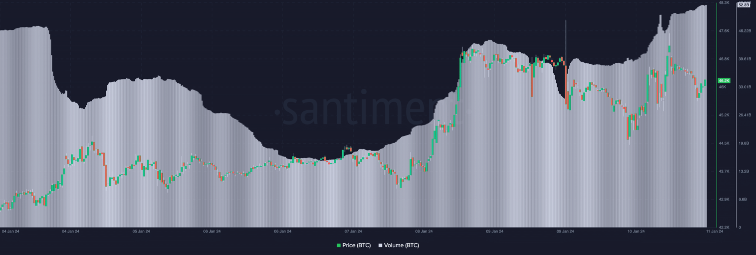 Furthermore, AMBCrypto checked for Bitcoins volume since the announcement. At the time of writing, volume had risen to $52.3 billion – a mark that had been bypassed since the start of the new year.
