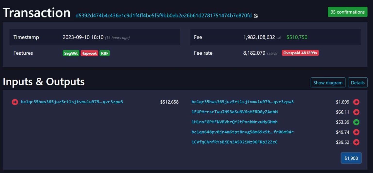 The post Bitcoin User’s Costly Mistake Leads to Record $510,000 Transaction Fees appeared first on CryptoSlate.