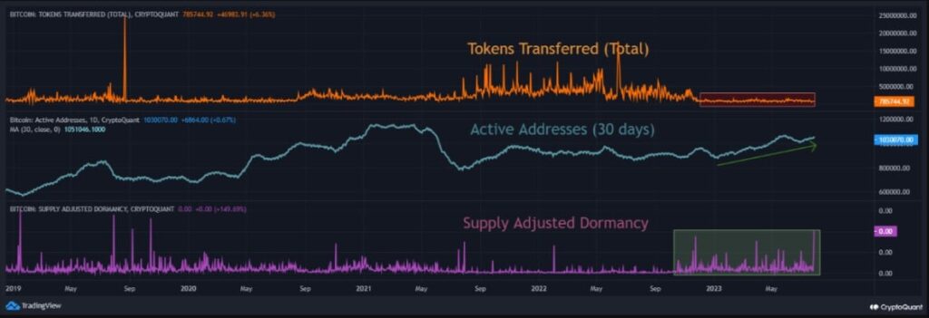 This was evident from the rise in active addresses while the tokens transferred remained dormant.