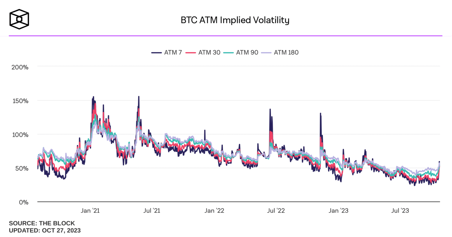 When IV increases, it means market participants expect greater price fluctuations. This increased IV could lead to more price turbulence, making Bitcoin a potentially riskier asset in the short term.