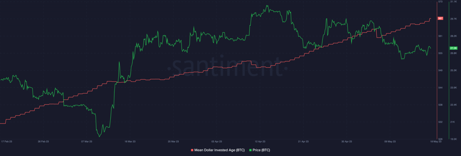 Data from Santiment showed a consistent upward trend in Bitcoin’s MDIA since February, suggesting long-held tokens refused to change hands. Interestingly, this happened despite the significant price growth that marked the first quarter of the year.