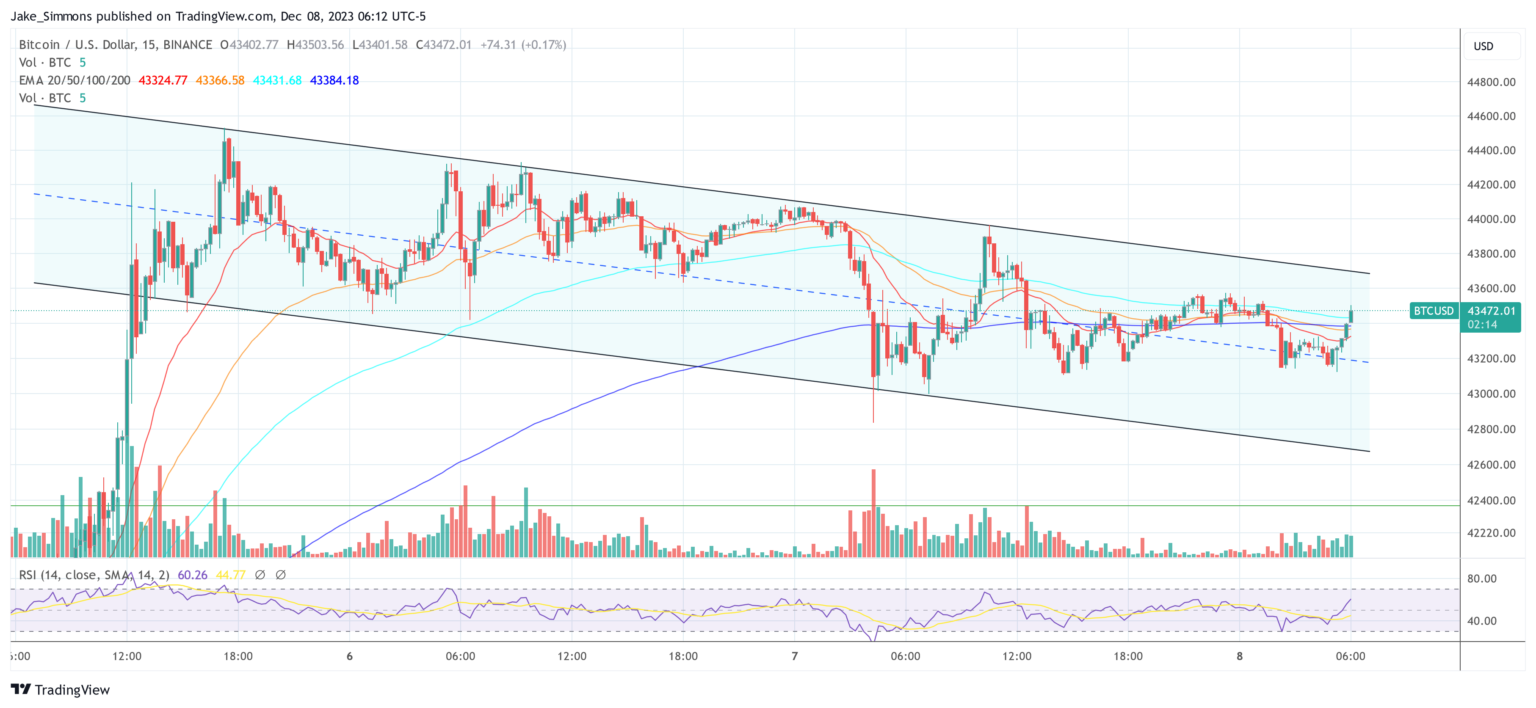Amid a week of significant cryptocurrency volatility, Bitcoin price has been a point of focus, especially after dipping below $43,200 today. After rising to $44,533 on Tuesday, the price has since entered an ascending channel, hitting a local low of $42,835 on Thursday.