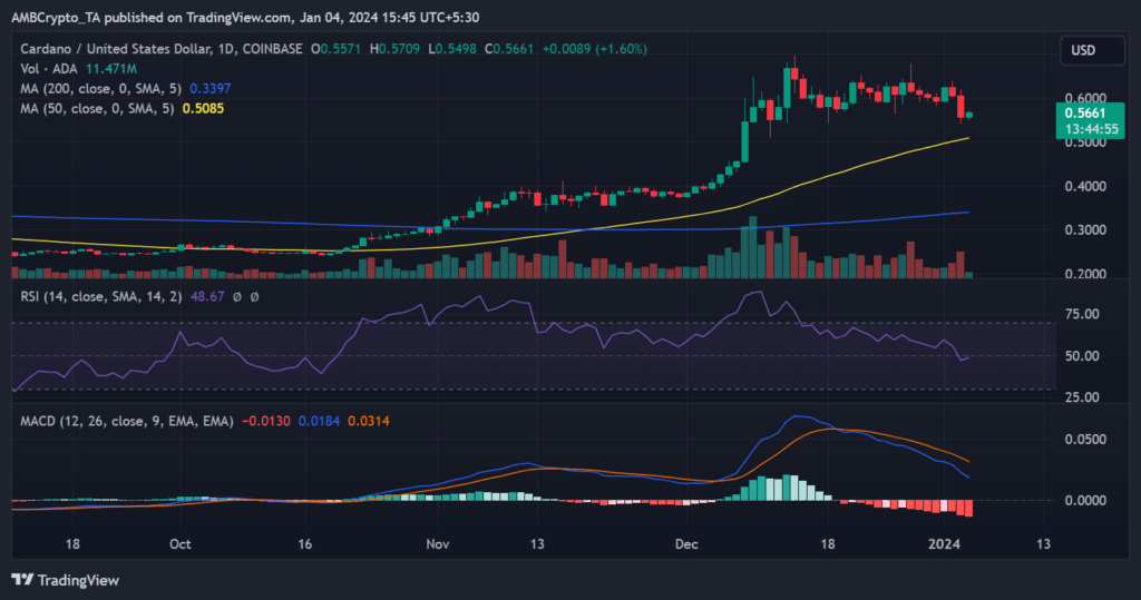 Cardano had a promising start to 2024, rising more than 5% on January 1 and reaching a trading value of more than $0.6. However, these gains were quickly lost in the following days.