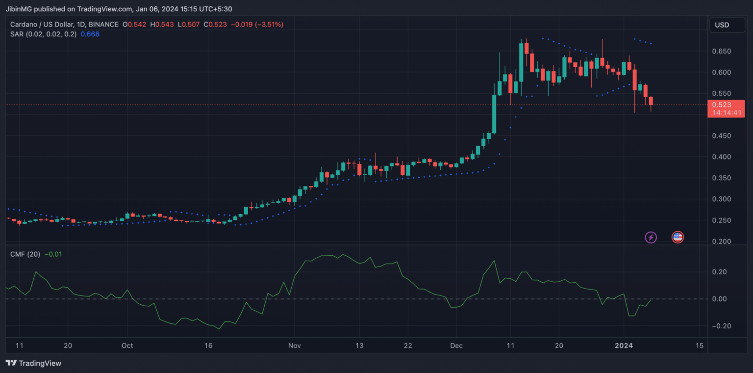 ADA was trading at $0.523 at the time of writing, with the crypto down more than 13% in a seven-day period. If the coin tests and crosses the support level now, ADA could soon reach early December levels.