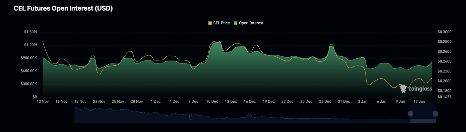 - CEL’s future Open Interest has continued to decline.