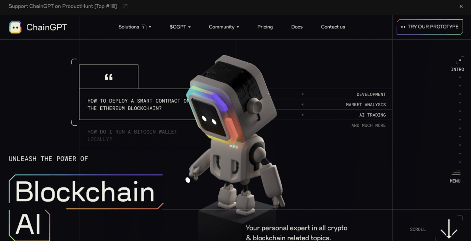 ChainGPT is the leading provider of AI-powered infrastructure for the crypto, blockchain and Web3 industries. From automated smart contract generation and auditing to autonomous community management, advanced Web3 AI chatbot, AI-powered news aggregation and NFT generation, ChainGPT is the most advanced, end-to-end AI solution on the market.