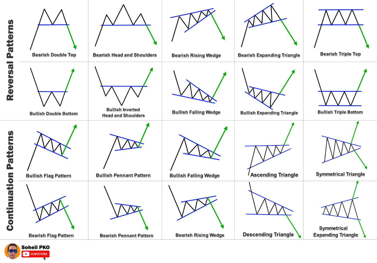 Enkele veel voorkomende grafiekpatronen. Bron: Soheil PK0