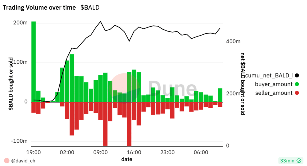 In the past 24 hours, LeetSwap recorded nearly $200 million in trading volume through 377,000 transactions. Half of the volume was due to BALD transactions which surged by 3100%. The token could potentially be a reference to Coinbase CEO Brian Armstrong’s shaved head.