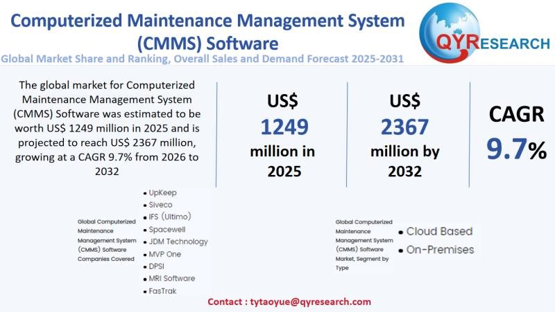 The global Computerized Maintenance Management System (CMMS) software market was estimated to be worth USD 1,249 million in 2025 and is expected to reach USD 2,367 million, with a CAGR of 9.7% between 2026 and 2032.