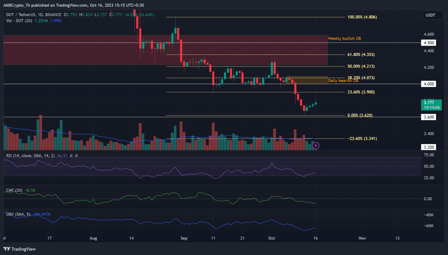 Dot [DOT] extended third-quarter losses into fourth-quarter 2023 as bearish pressure continued. In October, DOT lost more than 15%, falling from $4.3 to $3.6. However, after Bitcoin [BTC] recovering from recent losses, the altcoin staged a price reversal.