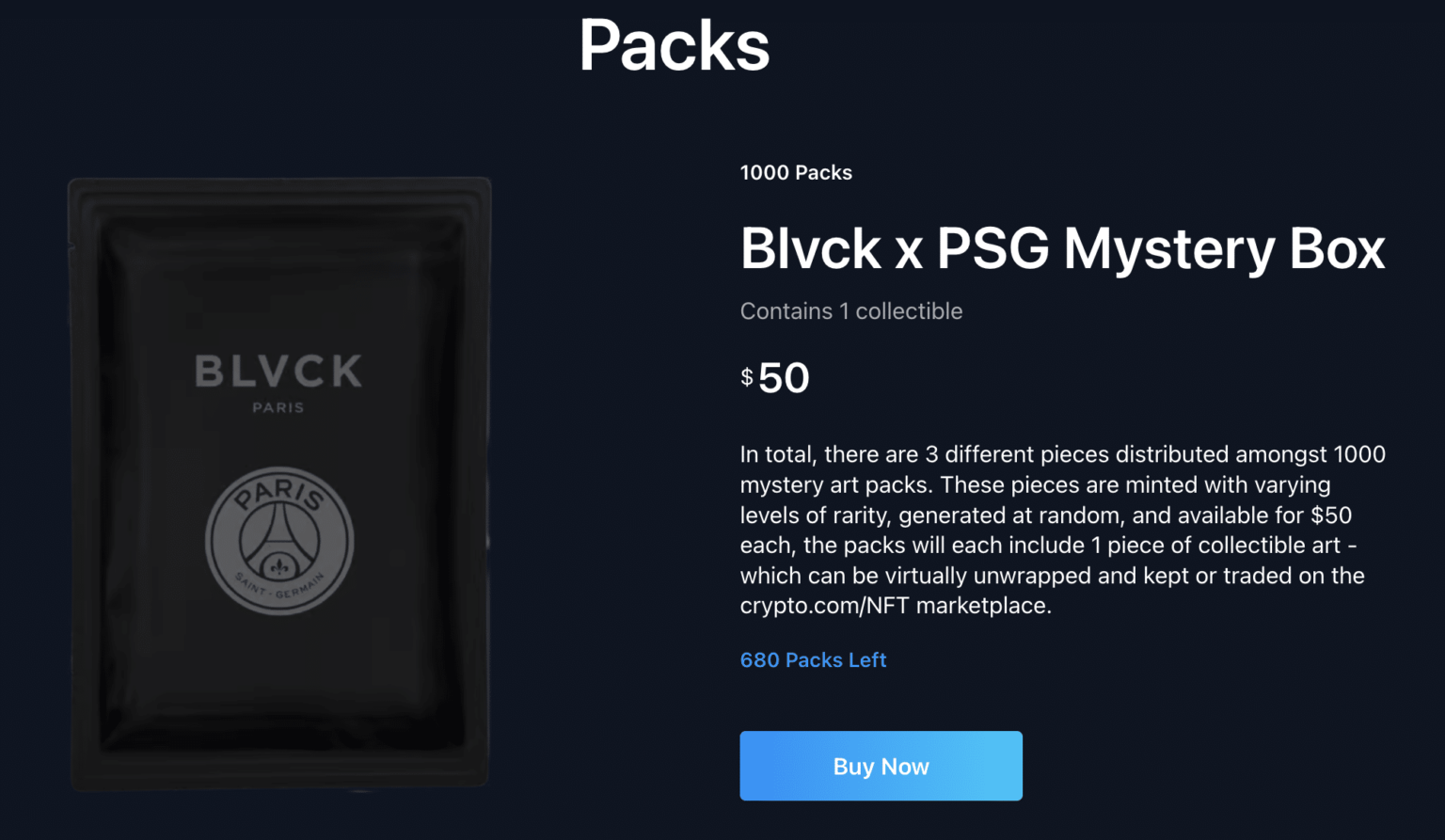 The NFTs are already for sale on the Crypto.com platform, with 1,000 NFTs, priced at $50 each, set to be released.
