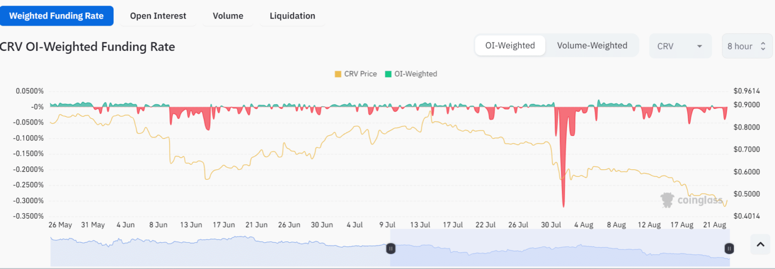 The fall in the price of the Curve token and the prevailing uncertainty seemed to have affected the overall market sentiment. According to data from Coinglass, CRV has been dealing with negative funding rates continuously for the past few days.