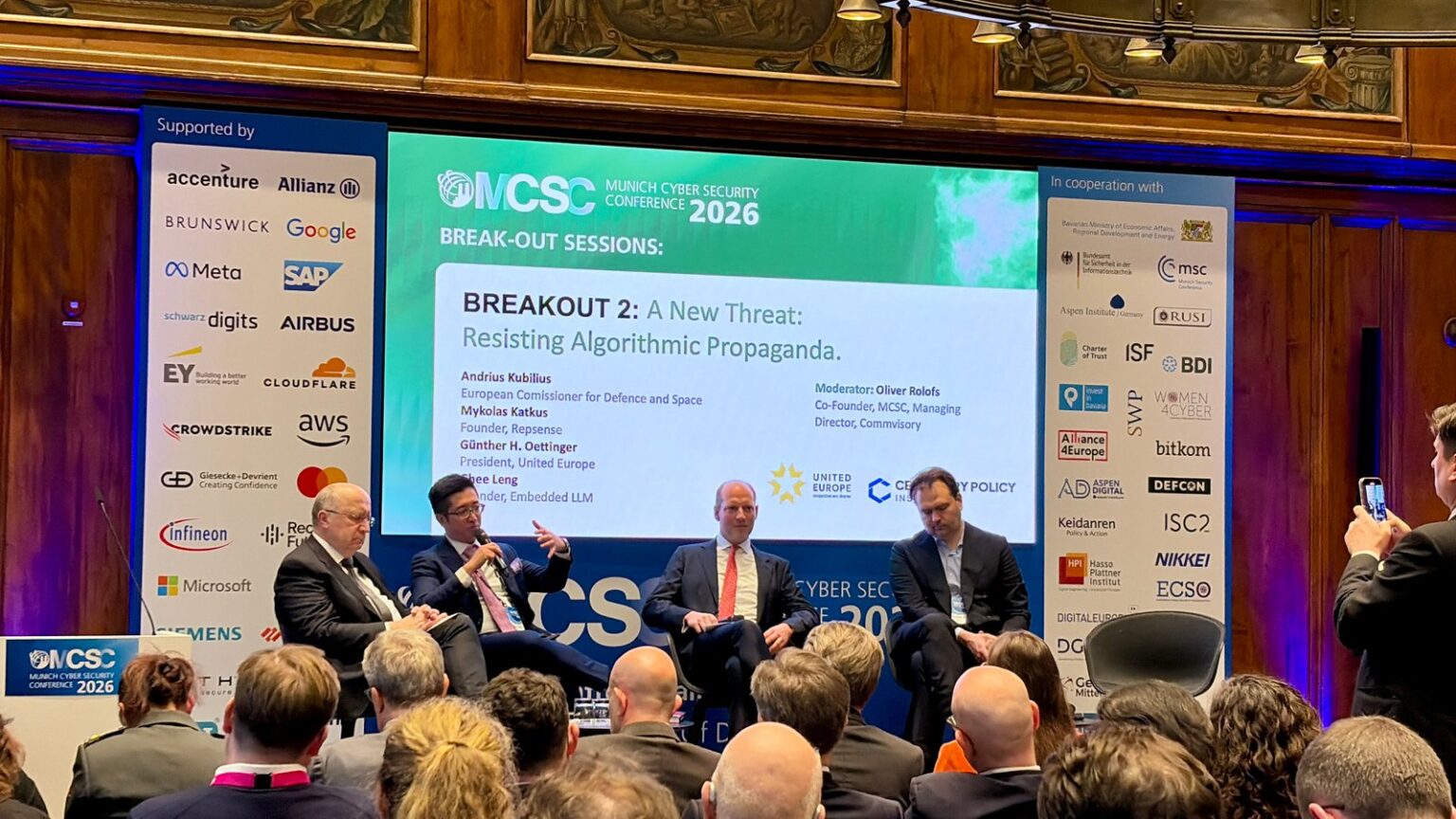 Presented at the Cyber Security Conference in Munich on February 12, 2026, with remarks from EU Commissioner Andrius Kubilius, former European Commissioner Gunther Oettinger, and Embedded LLM founder Ghee Leng Ooi. Panel moderated by Oliver Rolofs.