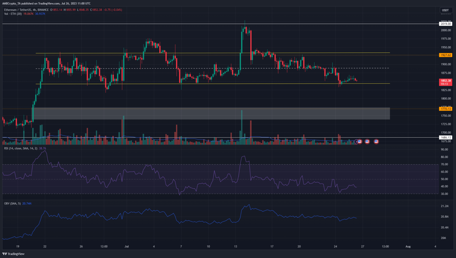 Ethereum [ETH] saw reduced volatility this week after steadily sinking lower on the price charts since mid-July. It was likely that traders were waiting for Bitcoin [BTC] to decide upon a direction. However, BTC itself has a bearish outlook – are ETH traders justified in looking for selling opportunities?