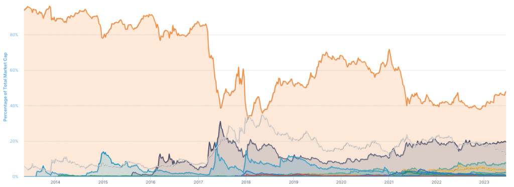 For context, Bitcoin dominance refers to the ratio between the market capitalization of the king coin and the total market capitalization of the cryptocurrency. As it went to press, CoinMarketCap revealed that its dominance had increased to 48.11%.