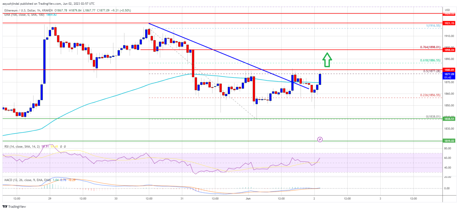 Ethereum price managed to stay above the USD 1,840 support. ETH formed a base and recently started a recovery wave from the low of $1,838, similar to Bitcoin.