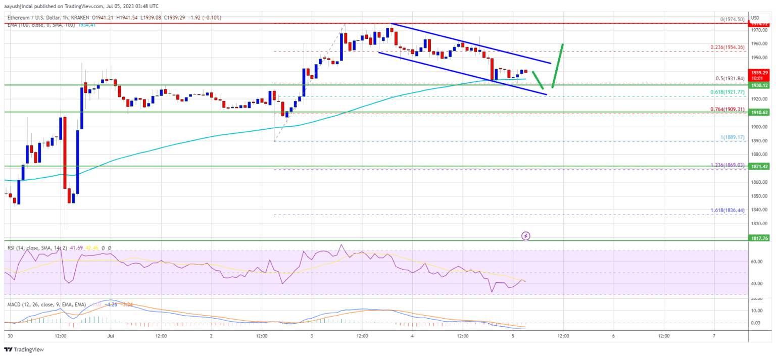 Ethereum price failed to test $2,000 and corrected lower against the US dollar. ETH is testing the $1,930 support and may start another increase.