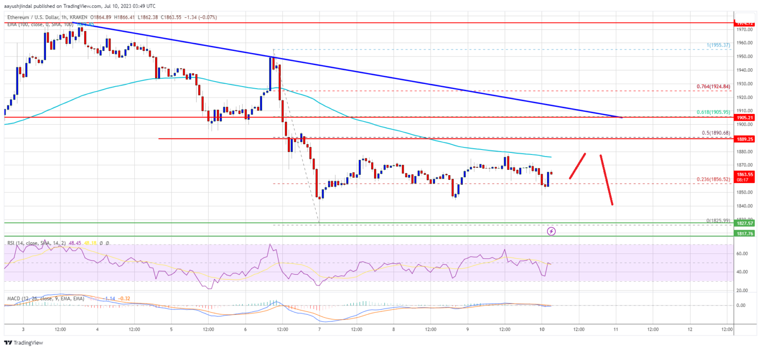 If Ethereum fails to clear the $1,890 or $1,900 resistance, it could fall further. The first support on the downside is near the $1,840 level.